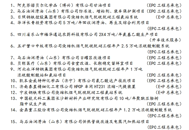EPC工程總承包、工程項(xiàng)目管理主要業(yè)績(jī)